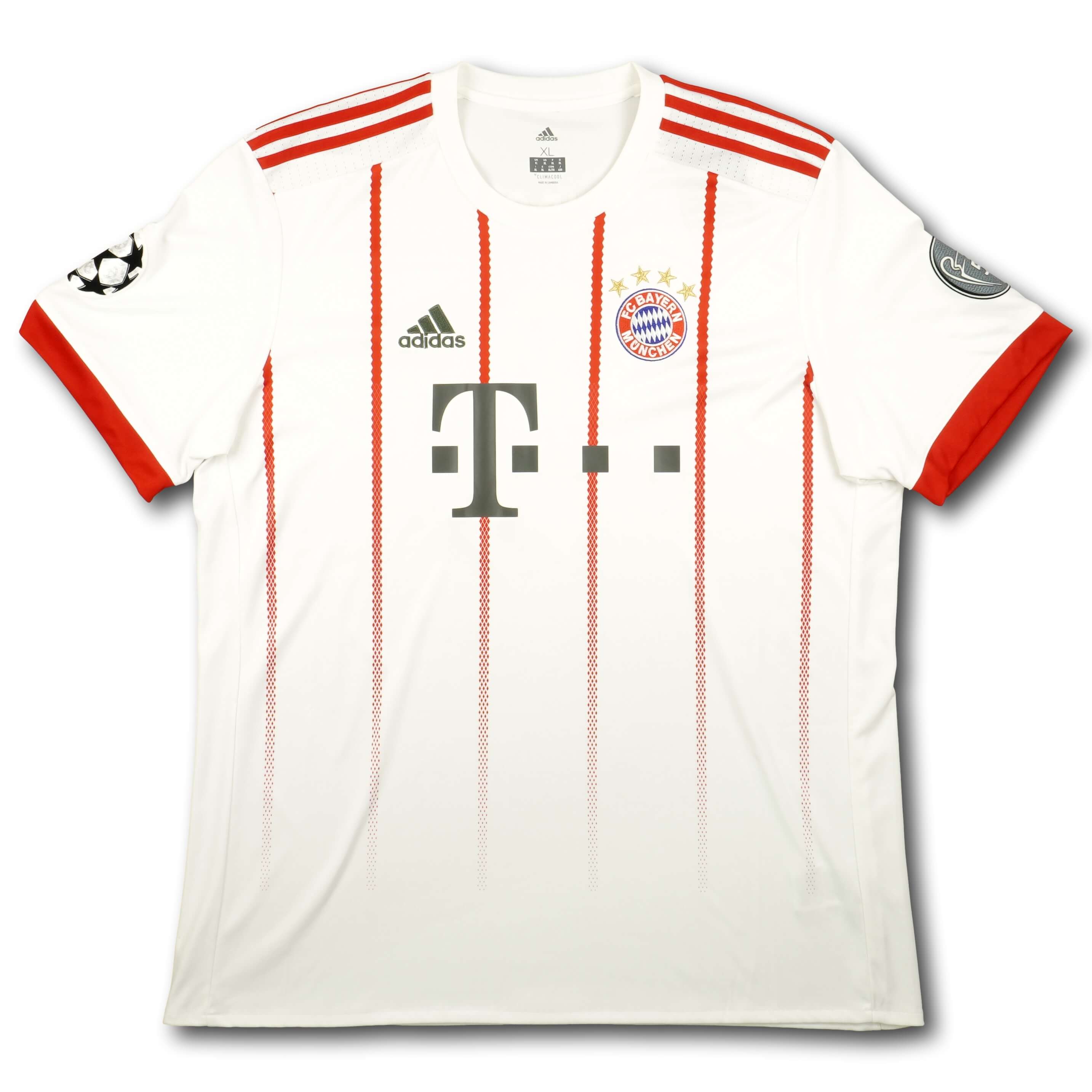 Das Produkt wurde von adidas hergestellt, ist weiss/rot und vom Typ "Drittes" aus der Saison 2017-18 in Grösse XL.