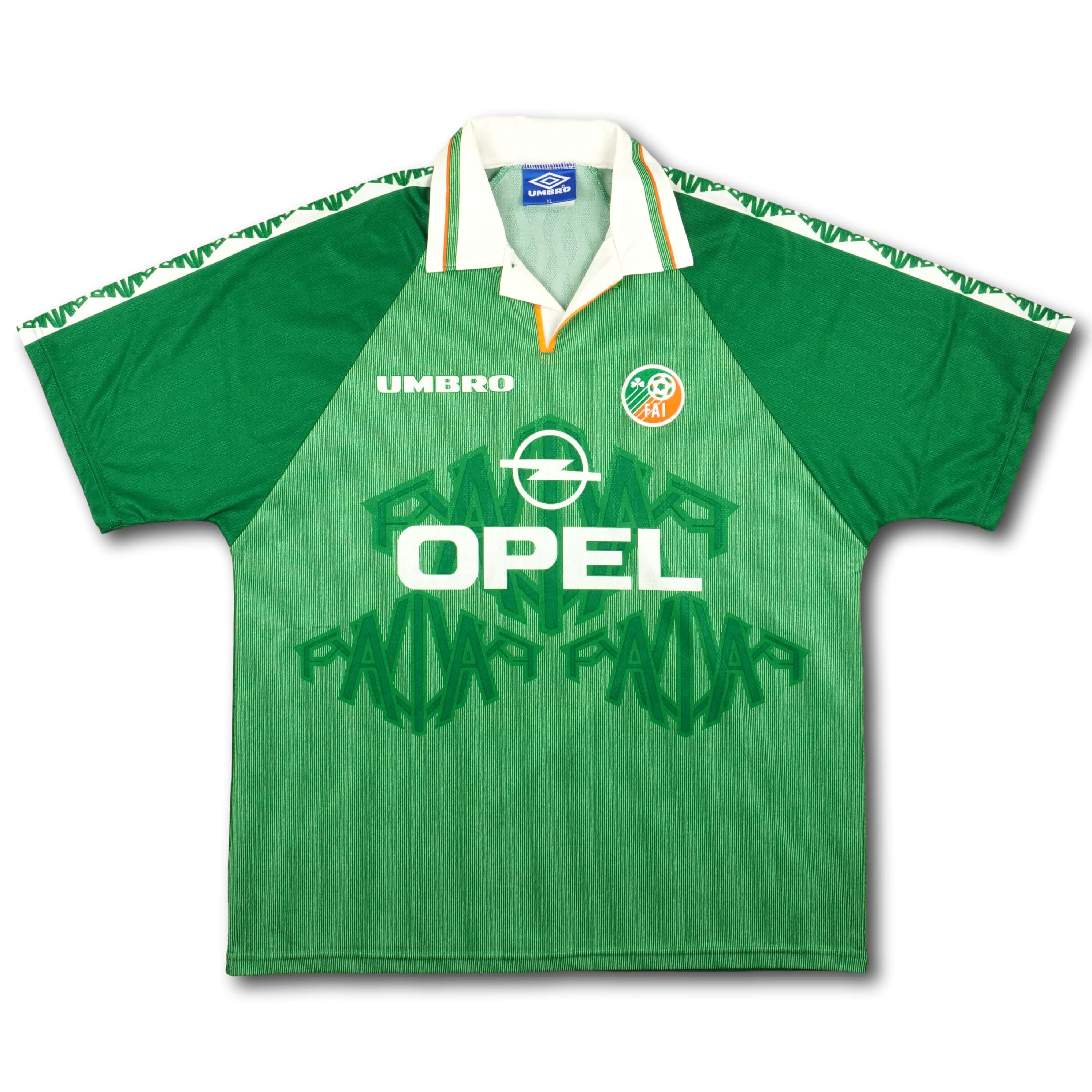 Sehr seltenes Irland Heimtrikot aus dem Jahr 1996, wie es u.a. in den Qualifikationsspielen für die Weltmeisterschaften 1998 getragen wurde.